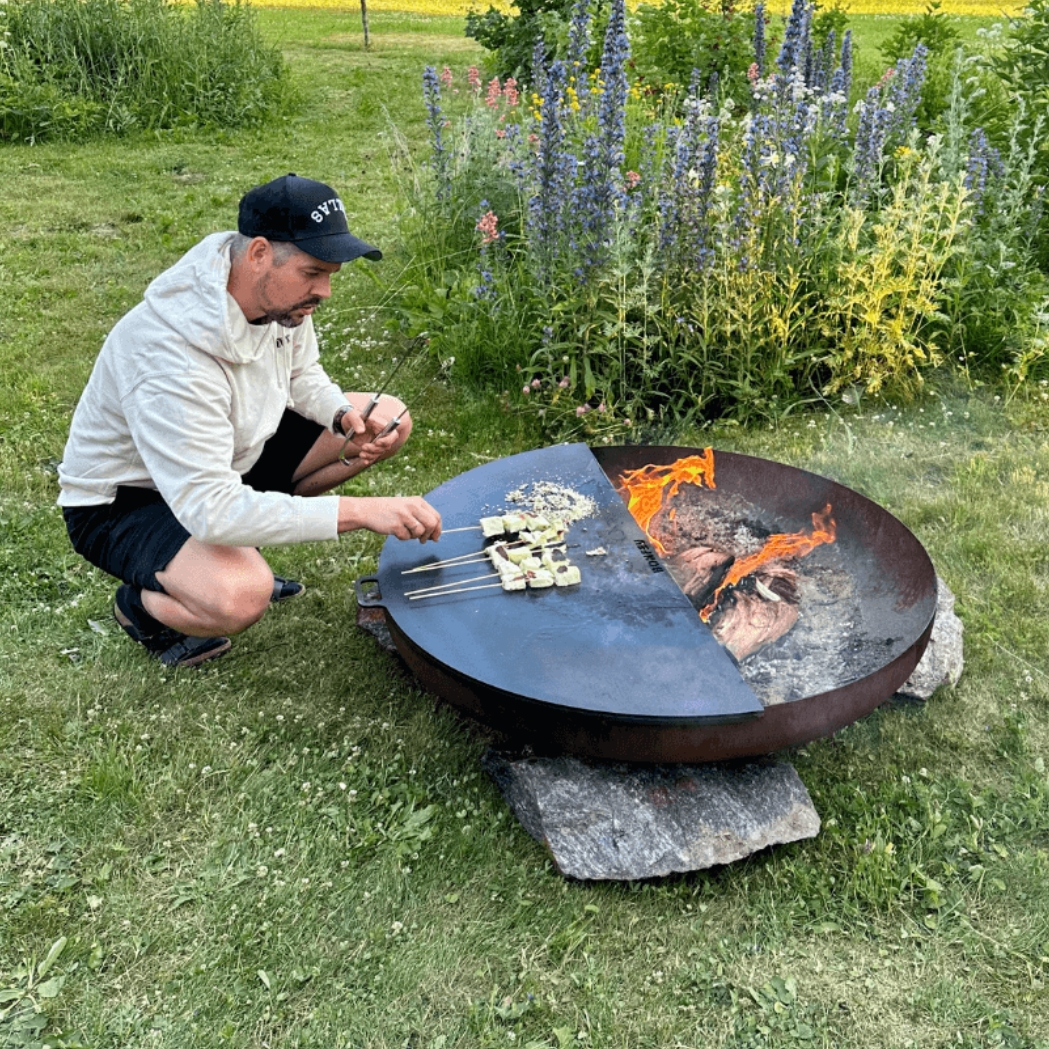 Da es sich um nur eine Hälfte einer Plancha-Fläche handelt, bleibt die andere Seite der Feuerschale frei für kreative Nutzungsmöglichkeiten – etwa zum Platzieren des BonGrill-Halbkreises oder einfach, um über der offenen Flamme Marshmallows oder Stockbrot zu geniessen.