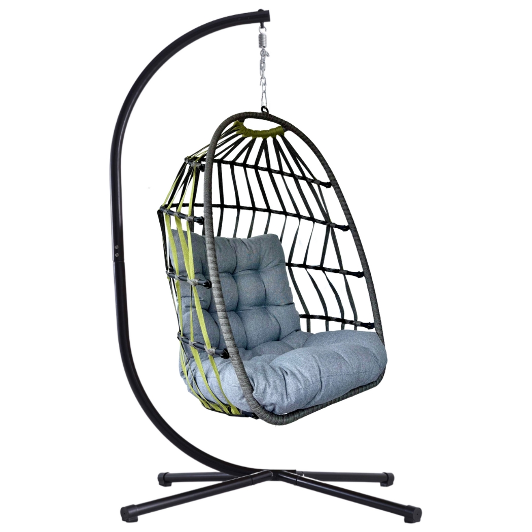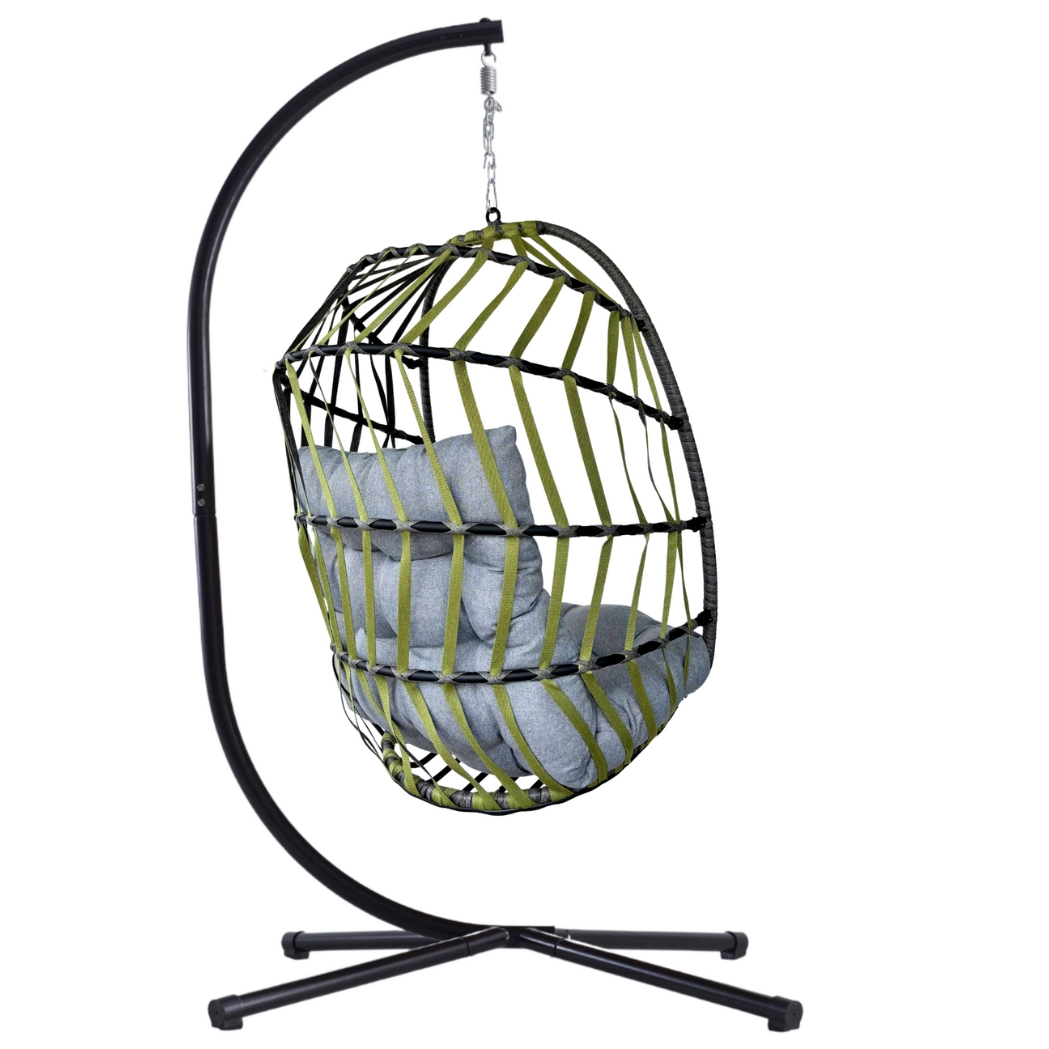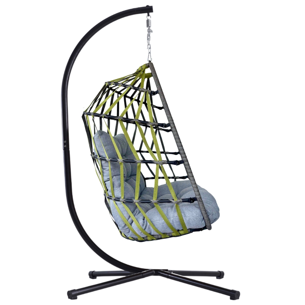 Hängesessel Maldives-Band Grau/Grün – wetterfest, klappbar & inkl. Komfort-Kissen