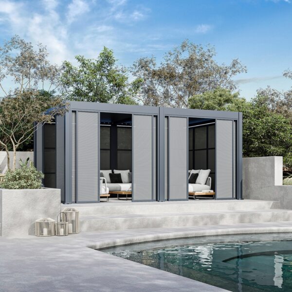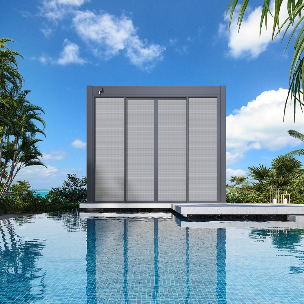 • Flexible Montage: Die Schiebewände lassen sich individuell an verschiedenen Seiten der Pergola anbringen