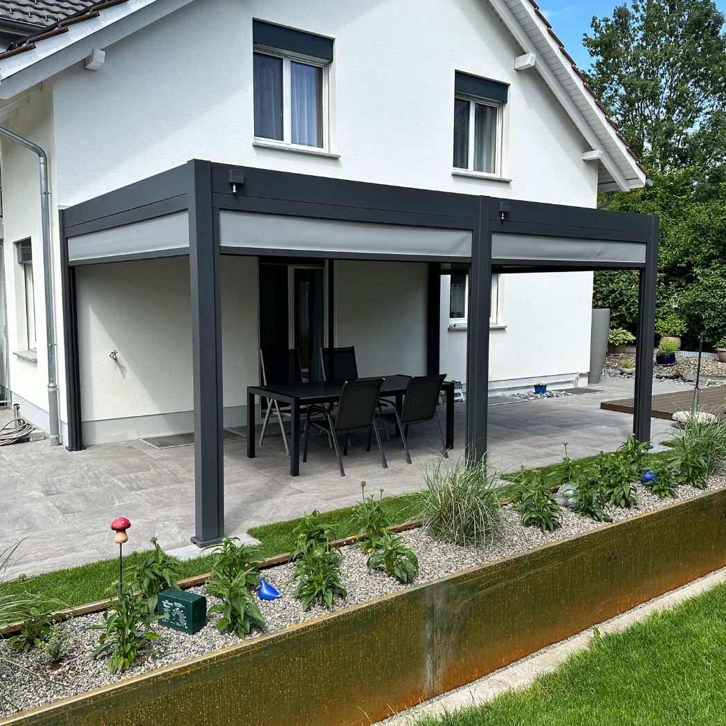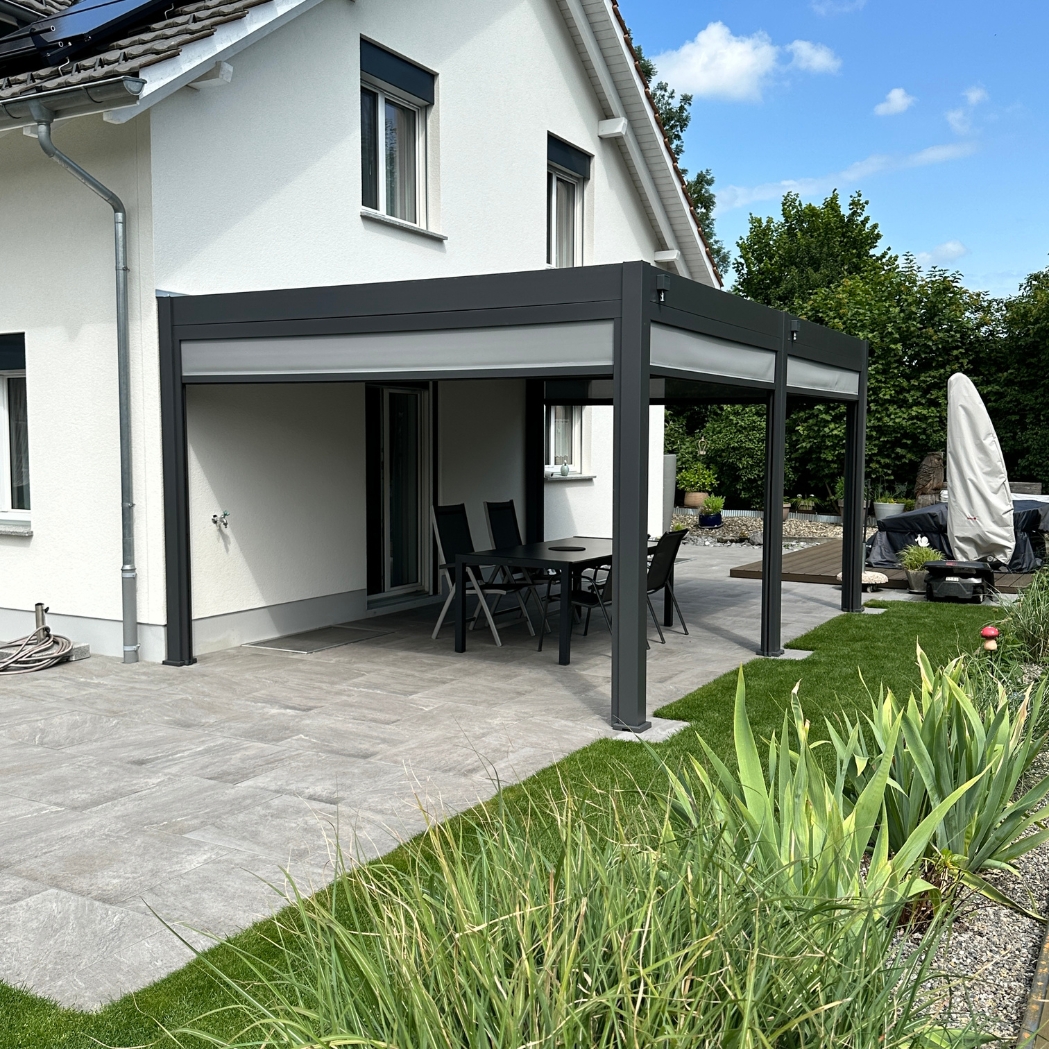 LAMELLENDACH | Einzigartiges und glattes Kipplamellendach, das der Pergola einen hochwertigen Look&Feel verleiht. Die Kipplamellen bieten viele Schutzmöglichkeiten vor Sonne, Regen und Wind. So haben Sie die Wahl, in der Sonne oder im Schatten zu sitzen. Aber auch bei Regenwetter bleiben Sie dank dem kippbaren Dach trocken.