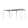 Die Überdachung wird mit Dehnschrauben zur Befestigung am Boden geliefert. Die Pergola muss auf einem soliden Untergrund montiert werden, beispielsweise durch Aufstellen von Betonfundamenten (oder grossen schweren Terrassenplatten). Achten Sie darauf, dass die Bodenplatten rechtwinklig und eben verlegt sind.